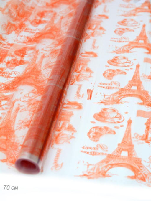 Пленка матовая с рисунком 40мкр "Париж Европа" красная 70см*10метров 5%
