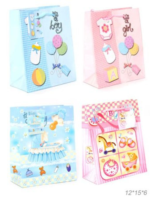 Цена за 12 шт. Пакет подарочный 12х15х6 С новорожденным / 310525 /уп 12/2400/