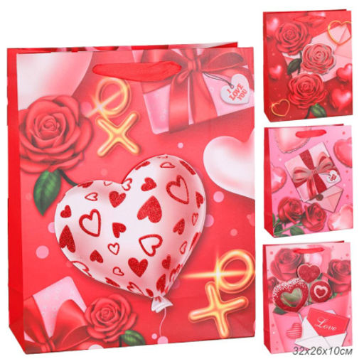 Цена за 12 шт. Пакет подарочный 32x26x10 / 1313M /уп 12/480/Сердце