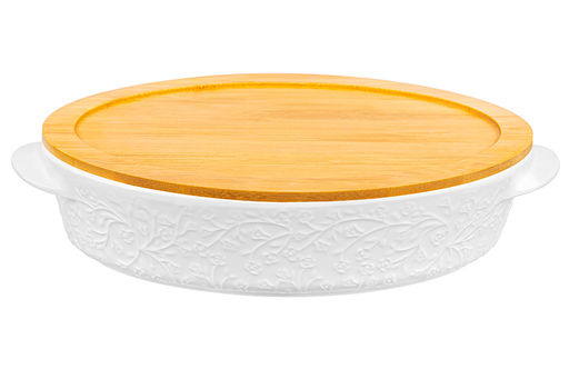 Блюдо д/зап и серв 35*24*8 см 2,5 л "Веточки-цветочки" овал + дерев. крышка-подставка