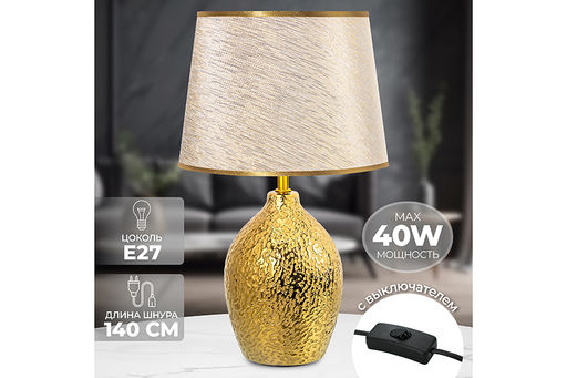 Настольная лампа 25*25*42,5 см "Мятое золото"+ золотистый круг абажур