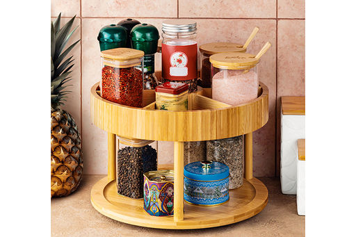 Подставка 2-уровневая 30*30*20 см, многофункциональная, вращающаяся, бамбук