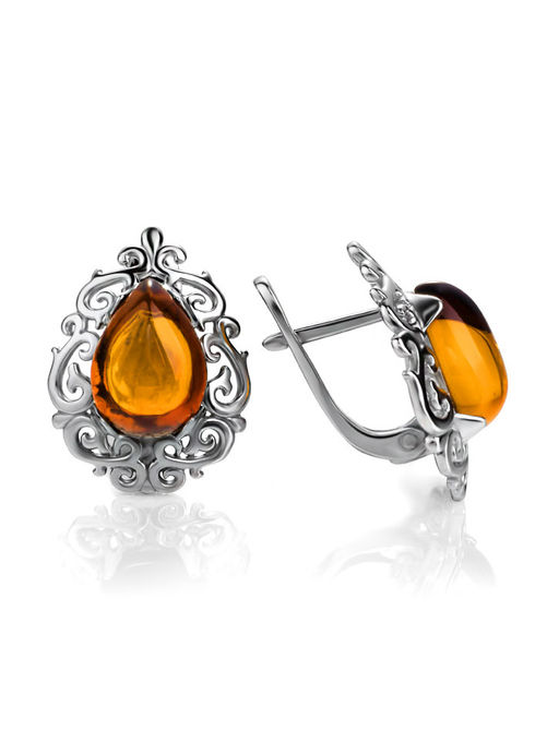 Изысканные серьги Луксор с золотисто-коньячным янтарём