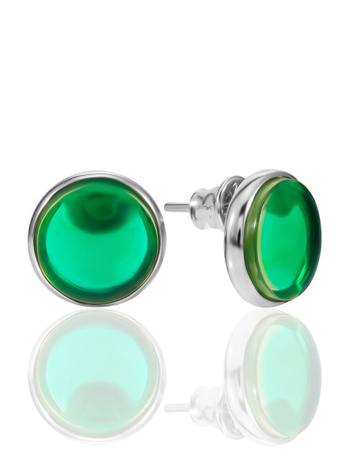 Лаконичные серьги-гвоздики Фурор с янтарём изумрудного цвета