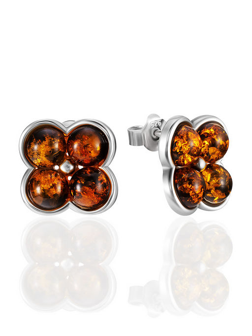 Очаровательные серьги-гвоздики с зелёным янтарём Суприм