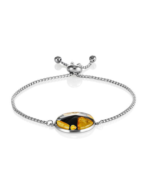 Браслет-цепочка с круглым медальном из янтарной мозаики Далматин