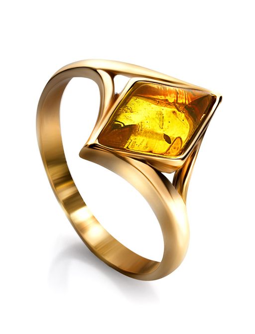 Лёгкое позолоченное кольцо с натуральным лимонным янтарём Коломбина
