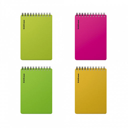 Цена за 4 шт. Блокнот с пластиковой обложкой на спирали ErichKrause Neon, А6, 80 листов, клетка_MIX-PACK