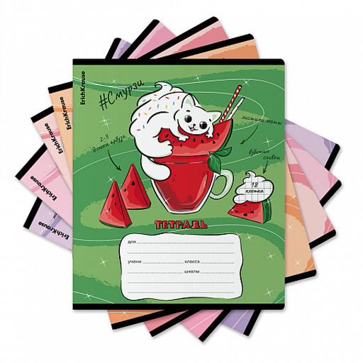 Цена за 10 шт. Тетрадь школьная ученическая ErichKrause Смурзи, 18 листов, клетка (в плёнке по 10 шт.)_MIX-PACK