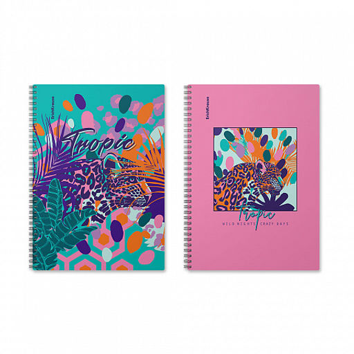 Цена за 2 шт. Тетрадь общая ученическая на спирали ErichKrause IQ FineLine Tropical, В5, 80 листов, клетка, глянц. ламин., блок 80г/м2, ассорти_MIX-PACK