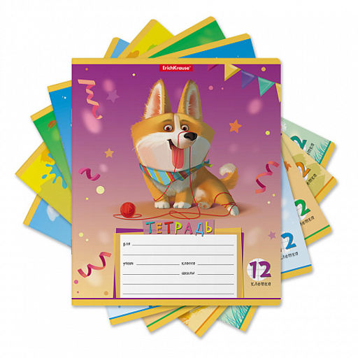 Цена за 280 шт. Тетрадь школьная ученическая ErichKrause Корги, 12 листов, линейка (в плёнке по 10 шт.)