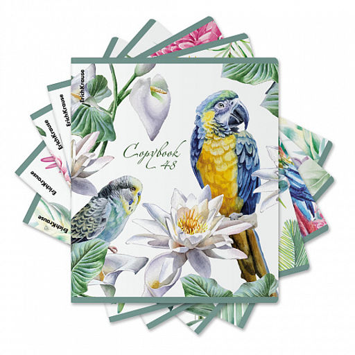 Цена за 5 шт. Тетрадь общая ученическая ErichKrause Тропические птицы, 48 листов, клетка, мат.лам.+выб. УФ-лак+тиснение фольгой+конгрев, доп.лист_MIX-PACK