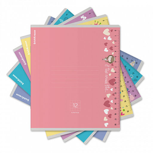 Цена за 10 шт. Тетрадь школьная ученическая ErichKrause Ruler Magic ассорти, 12 листов, клетка (в плёнке по 10 шт.)_MIX-PACK