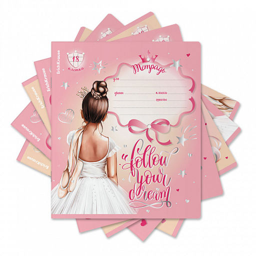 Цена за 10 шт. Тетрадь школьная ученическая ErichKrause Pointes, 18 листов, клетка, выборочный УФ-лак с глиттером (в плёнке по 10 шт.)_MIX-PACK