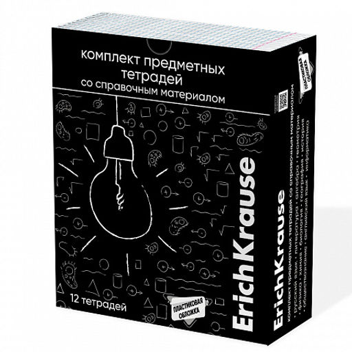 Цена за 1 шт. Комплект тетрадей общих ученических в пластиковой обложке ErichKrause Зри в корень, 48 листов, кл./лин., со спр. мат. (обечайка 12 шт.)