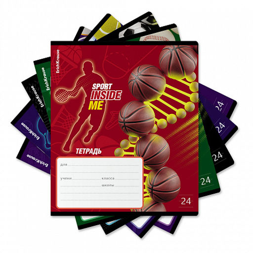 Цена за 10 шт. Тетрадь школьная ученическая ErichKrause Sport DNA, 24 листа, линейка, выборочный УФ-лак+конгрев (в плёнке по 10 шт.)_MIX-PACK
