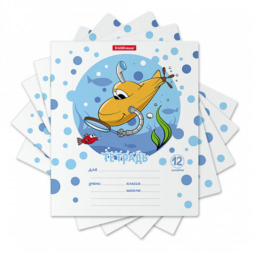 Цена за 10 шт. Тетрадь школьная ученическая ErichKrause Funny Submarine, 12 листов, линейка (в плёнке по 10 шт.)_MIX-PACK