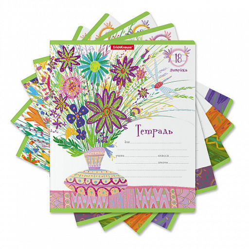 Цена за 10 шт. Тетрадь школьная ученическая ErichKrause Стильный букет, 18 листов, линейка (в плёнке по 10 шт.)_MIX-PACK