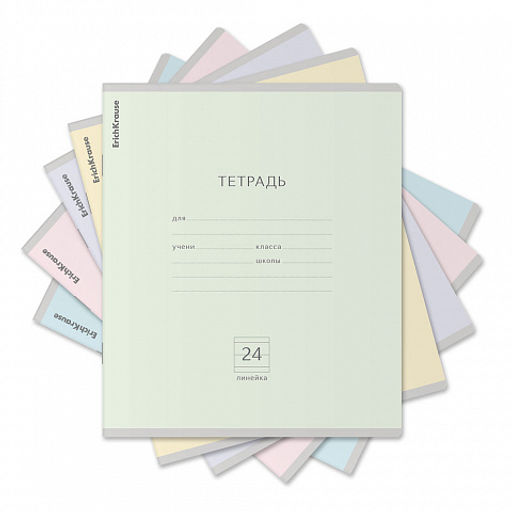 Цена за 10 шт. Тетрадь школьная ученическая ErichKrause Классика Pastel ассорти, 24 листа, линейка (в плёнке по 10 шт.)_MIX-PACK