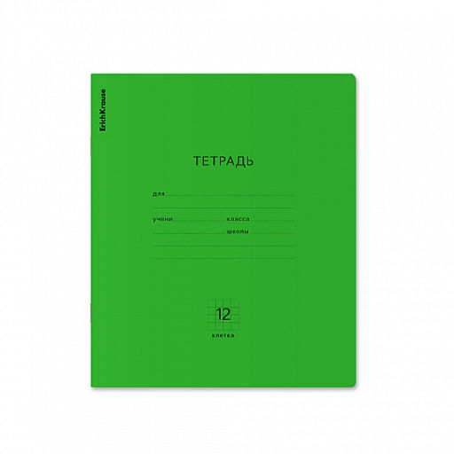 Цена за 10 шт. Тетрадь школьная ученическая ErichKrause Классика Neon зеленая, 12 листов, клетка (в плёнке по 10 штук)