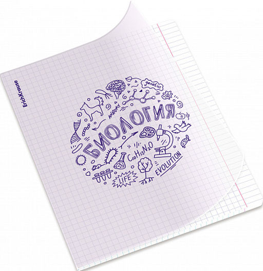 Цена за 5 шт. Тетрадь общая ученическая с пластиковой обложкой на скобе ErichKrause Chaos, Биология, 48 листов, клетка
