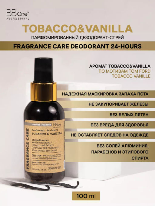 DEODORANT 24-HOURS TOBACCO&VANILLA, 100 МЛ ПАРФЮМИРОВАННЫЙ ДЕЗОДОРАНТ-СПРЕЙ