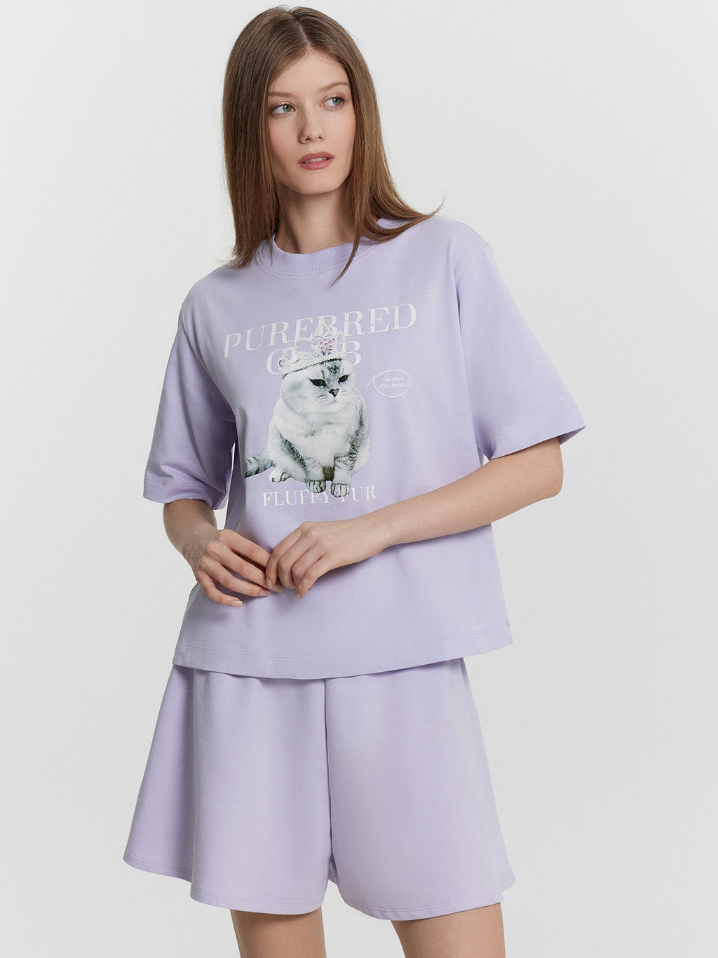 Футболка женская лавандовая с принтом и надписью "Purebred club"