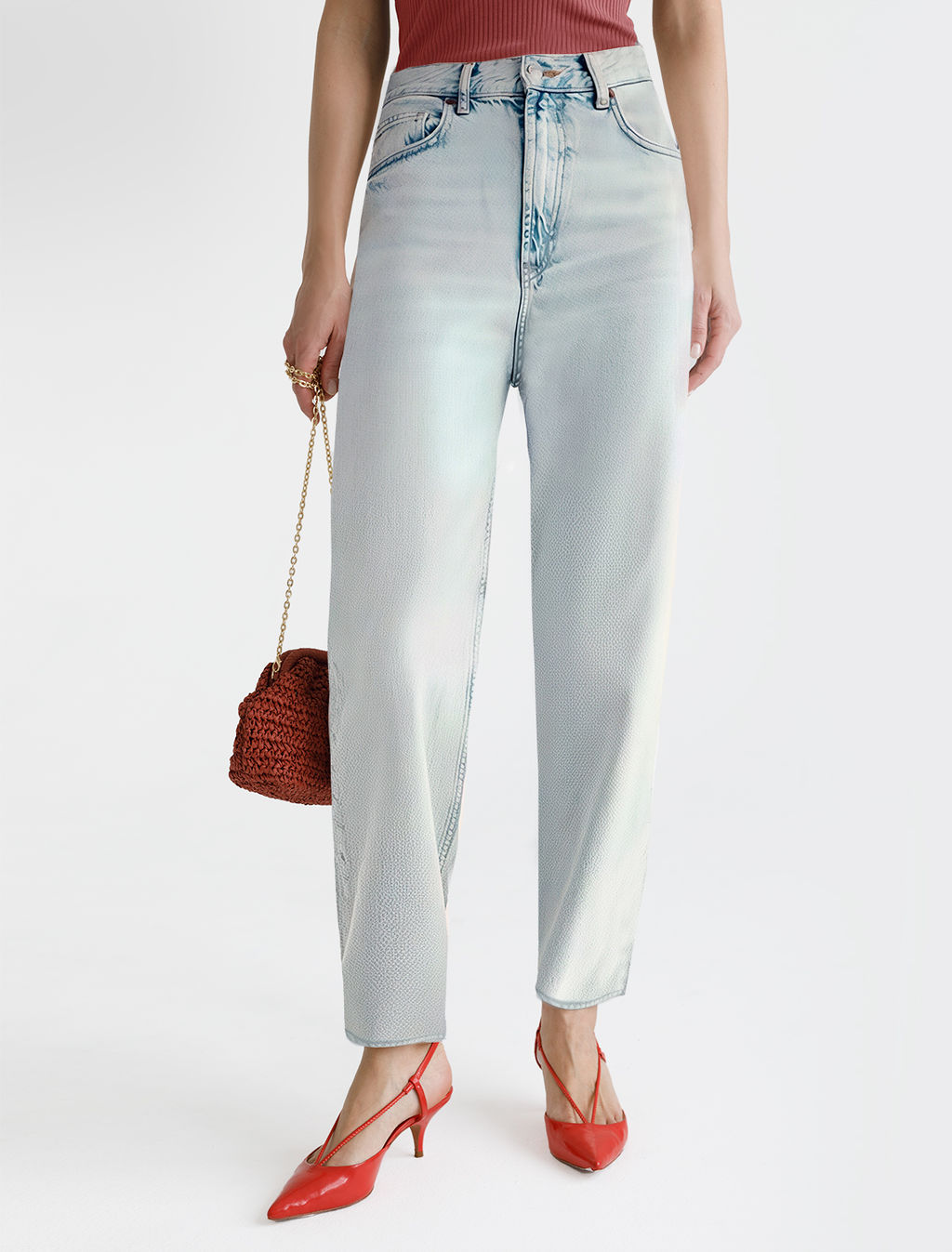 Джинсы Vilatte mom-fit эластичный деним светло-голубой
