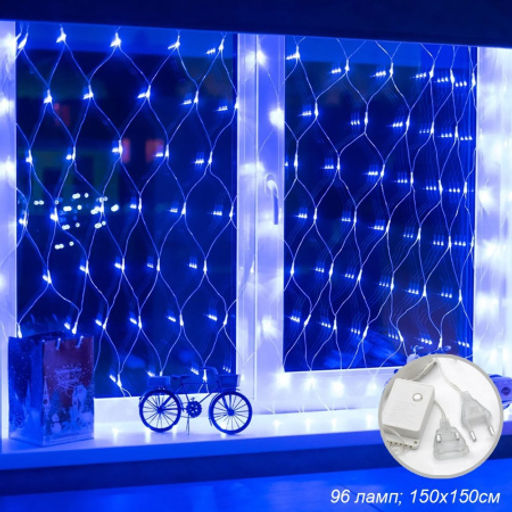 Гирлянда светодиодная Сетка 1,5х1,5 м, 96 LED 8 режимов холодный синий / L120 /уп 100/коробка
