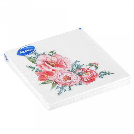 Салфетки бумажные 33х33см "Лилия", 2-х слойные, 20 штук в упаковке, "Цветочная композиция" (Россия)