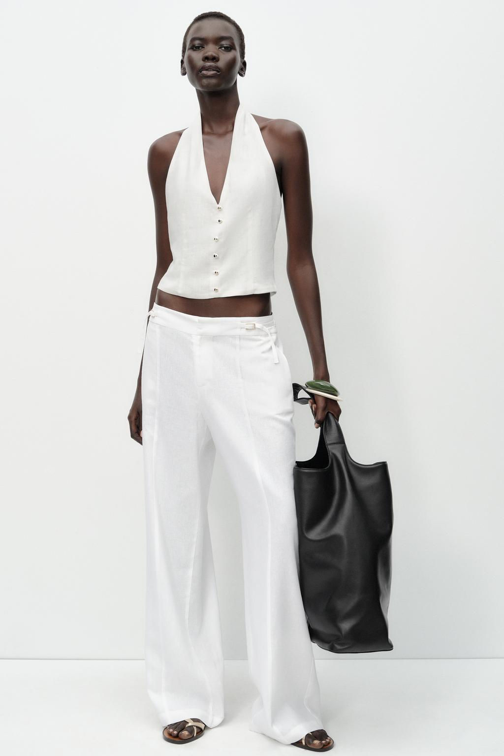 LINEN BLEND WIDE-LEG TROUSERS WITH BUCKLES