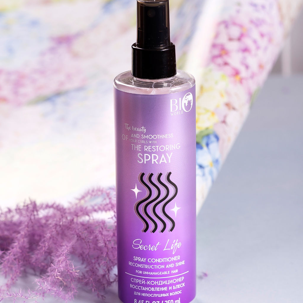 Bio World Secret Life Спрей-кондиционер Восстановление и блеск для непослушных волос 250мл