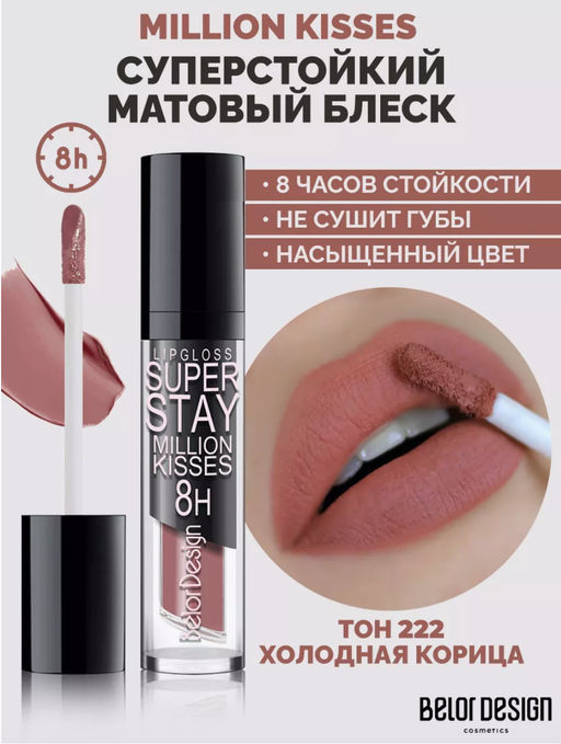 BelorDesign Блеск для губ суперстойкий SUPER STAY Million kisses тон 222 холодная корица