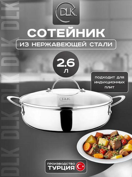 Сотейник с крышкой стеклянной из нержавеющей стали (3-х слойный) 26x7 см (2.6 л), арт. 3550-26