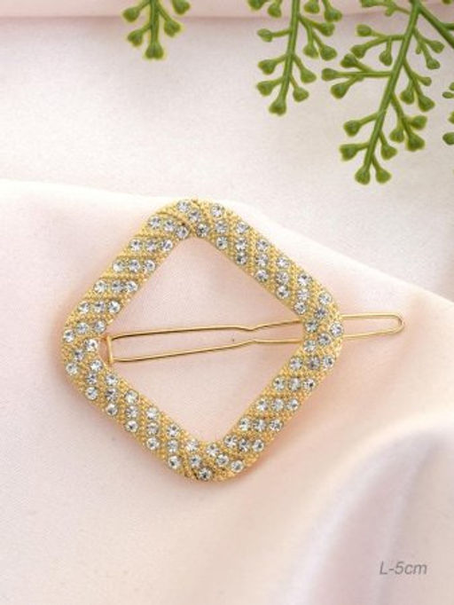 Заколка-зажим для волос 5 см / GTK-30 /уп 12/золото/стразы