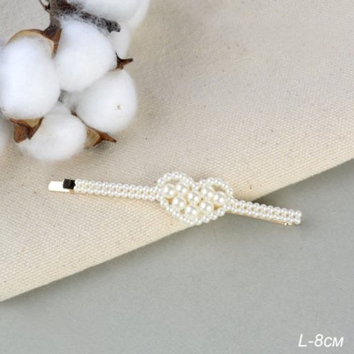 Невидимка для волос 8 см Сердцк / 2125-17 /уп 12/золото/жемчуг