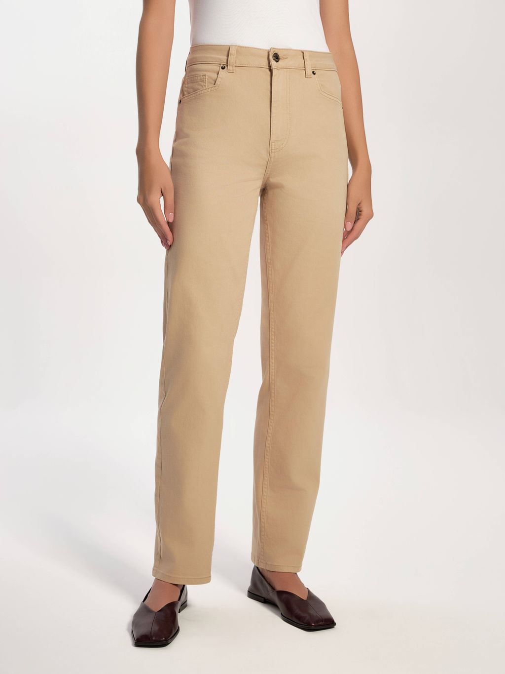 Артикул: CONTE CON-767 Джинсы straight песочного цвета c геометрическими карманами camel
