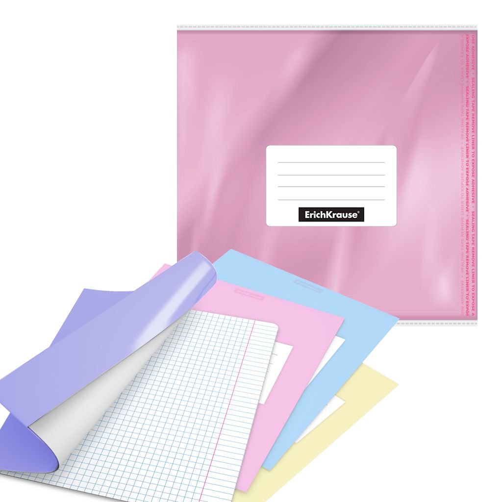 Цена за 1 шт. Набор пласт. обл. ErichKrause® Fizzy Pastel для тетр. и дневн., кл. край, клап. в край, стик. для подписи, 212х395мм, 100мкм (пакет 12 шт.)