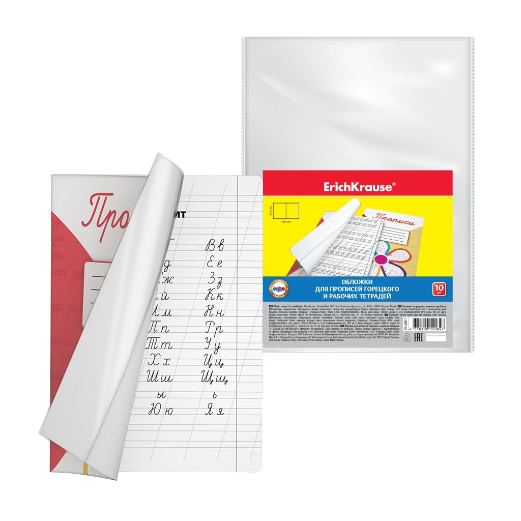 Цена за 1 шт. Набор пластиковых обложек ErichKrause Fizzy Clear, для прописей Горецкого и рабочих тетрадей, 242х338мм, 50 мкм (пакет 10 шт.)