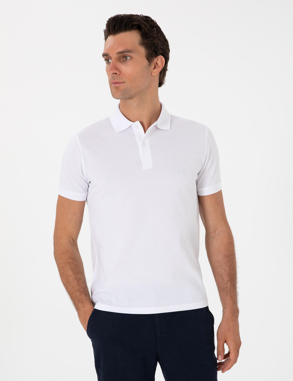 Beyaz Slim Fit %100 Pamuk Polo Yaka T-shirt