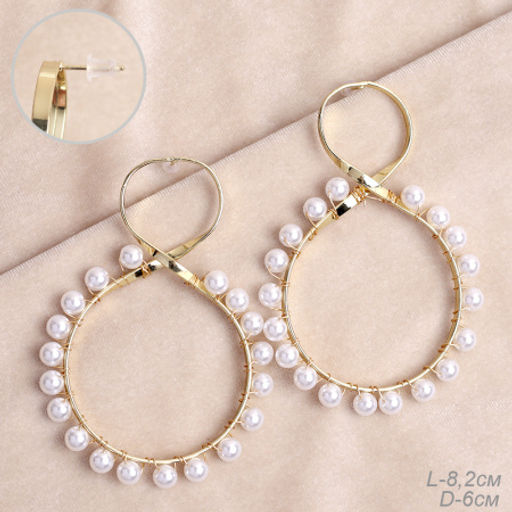 Серьги-кольца 6 см / 537 /уп 12/жемчуг