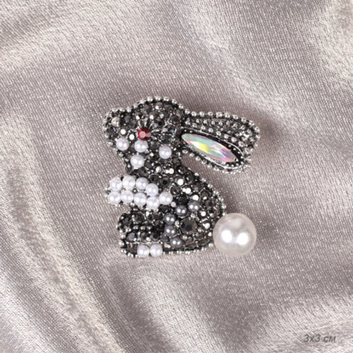 Брошь Зайка 3 см / 3226 /уп 12/ с жемчугом/ серая
