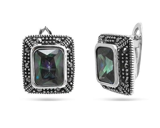 Серьги из серебра марказит, мистик кварц, SL-AGA78
