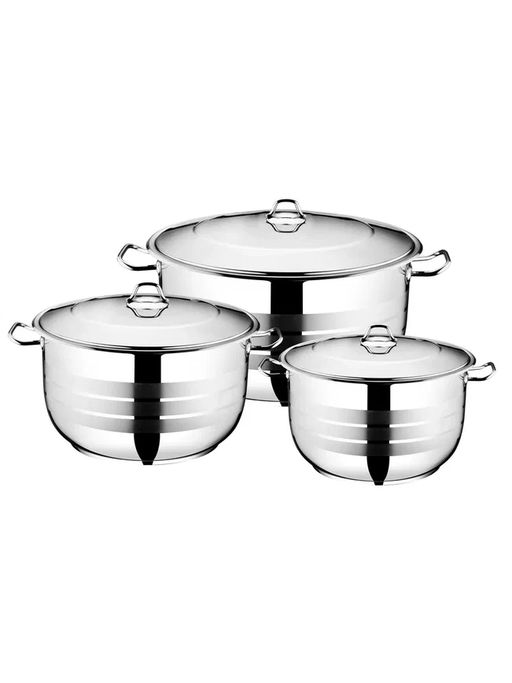 Набор посуды из нержавеющей стали из 6 (3/3) предметов, крышки металлические, арт.1500