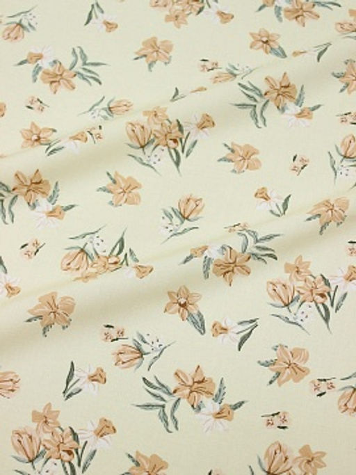 Штапель "Нарциссы на молочном", ш.1.45м, вискоза-100%, 100гр/м.кв