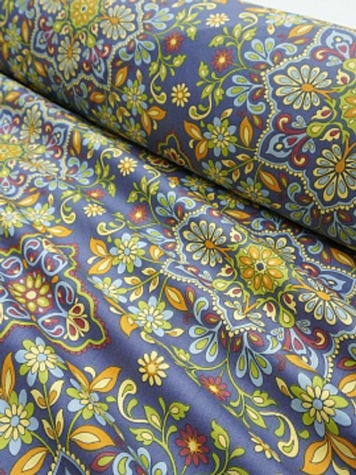 Сатин "Мандала цветов" цв.джинсово-фиолетовый, ш.2.5м, хлопок-100%, 115гр/м.кв