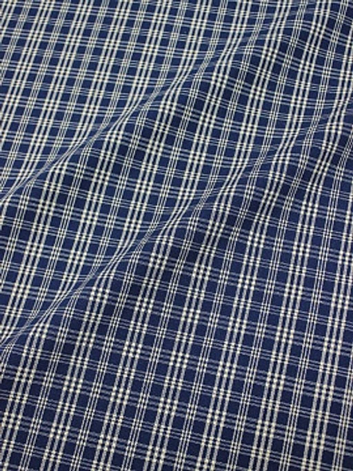 Пестрядь этнографическая под домоткань "Белая клетка на темно-синем", ш.1.6м, хлопок-100%