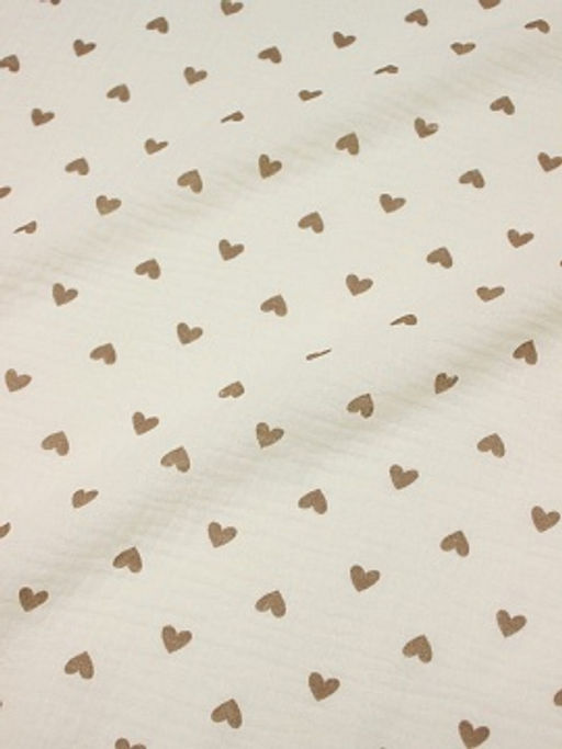 Муслин двухслойный с эф.жатости "Бежевые сердечки" цв.сливочный, ш.1.4м, хлопок-100%, 120гр/м.кв