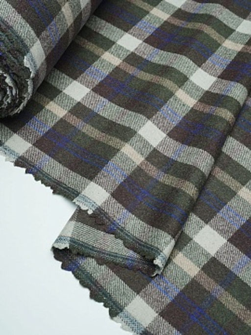 Шерсть пальтово-костюмная Твид "Клетка" цв.молочный/коричневый/зеленый, ш.1.5м, шерсть-60%, п/э-40%