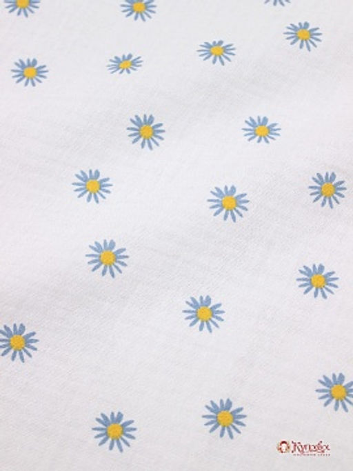 Муслин двухслойный с эф.жатости "Ромашки" цв.белый, ш.1.35м, хлопок-100%, 110гр/м.кв
